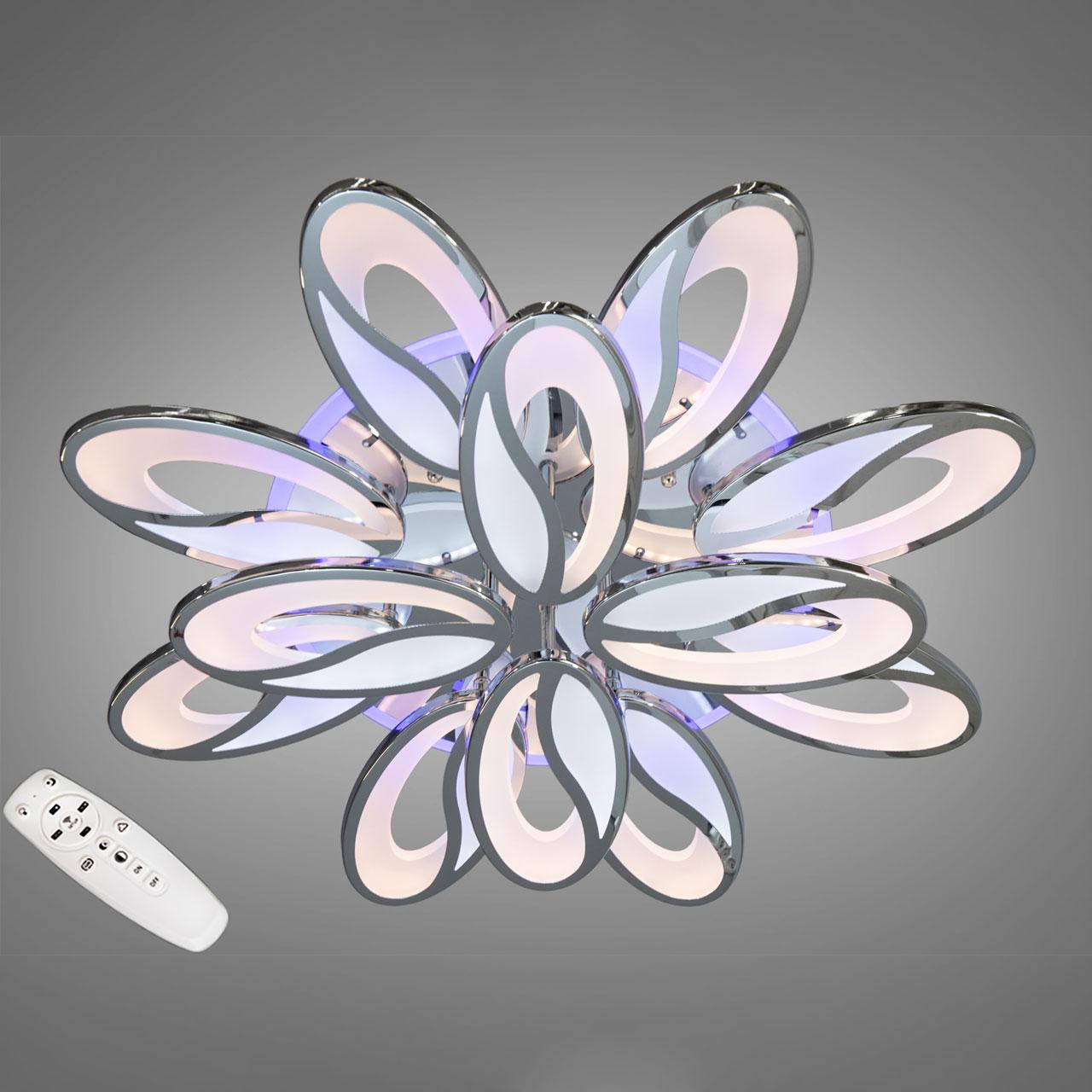 Світлодіодна люстра 190 Вт колір каркасу хром на пульті д/к з діммером та підсвічуванням основи D-9101/8+4HR LED 3color dimmer