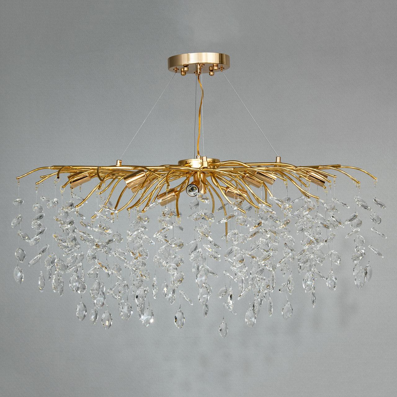 Сучасна кришталева люстра на 10 ламп Е14 колір каркасу золотий D-2718-L900x400GD