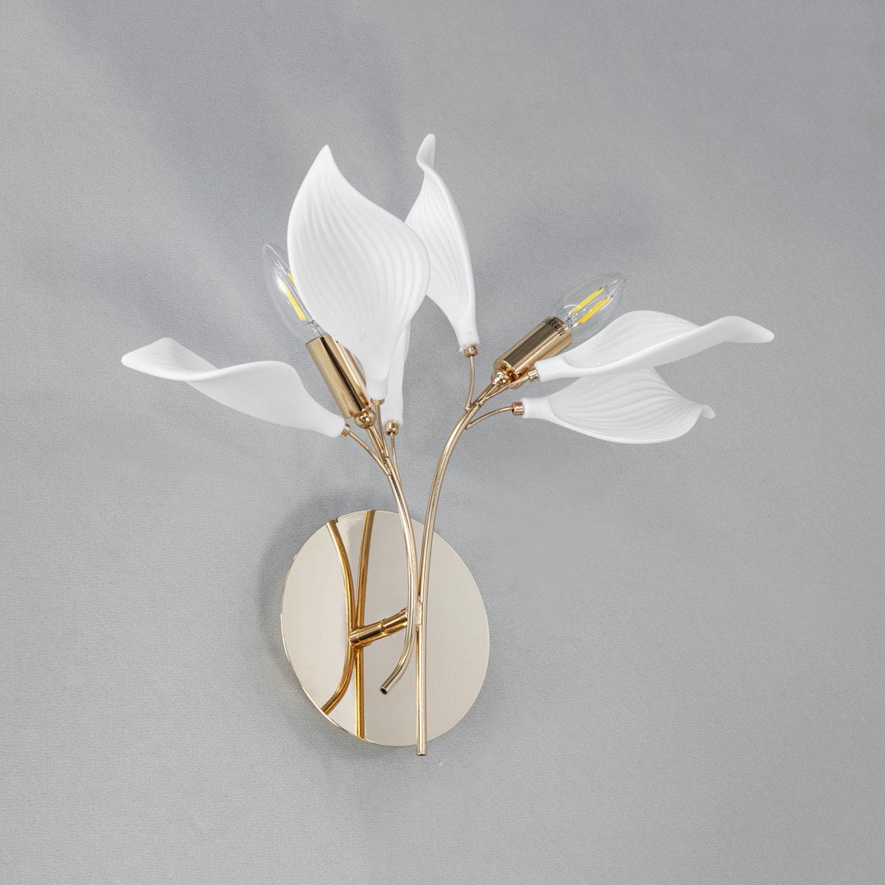 Бра на 2 лампи E14 з фарфоровими елементами колір каркаса золотий D-8283-2W GD